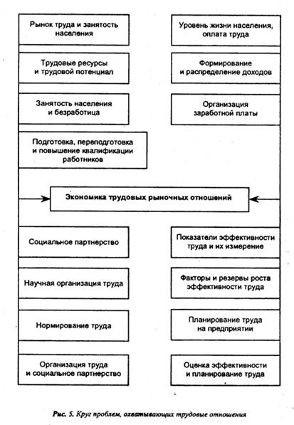 Обеспечение предприятия рабочей силой следует рассматривать с позиции экономики трудовых рыночных отношений, которые включают в себя многочисленные проблемы, решаемые в ходе этих отношений (рис. 5).