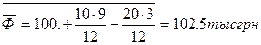 Пример: Стоимость основных фондов предприятия на начало года составляет Фн=100 тыс. грн. Введены в эксплуатацию в текущем году (15.03) фонды на сумму Фвв=10000 грн. Выведены из эксплуатации (6.09)фонды на сумму Фвыб=20000 грн. Тогда среднегодовая стоимость основных фондов составит: