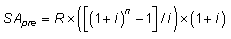где SApre — будущая стоимость аннуитета, осуществляемого на условиях предварительных платежей (пренумерандо);