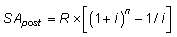 где SApost — будущая стоимость аннуитета, осуществляемого на условиях последующих платежей (постнумерандо);