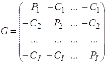 Платежная матрица модели является матрицей выигрыша первого игрока (филиала), играющего со вторым игроком (спросом). Эта матрица отражает особенности ценовой политики и торговых издержек региональных филиалов.