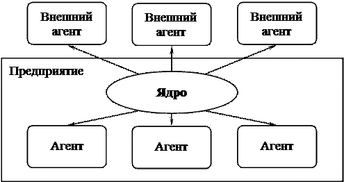 · использование динамической сети в качестве организационной структуры, включающей в себя координационный центр (ядро ВКС) и временные структурные единицы (агенты ВКС – исполнители, партнеры);