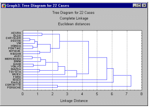 Рис. 5.6. Дендограмма кластерного анализа марок автомобилей