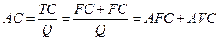 где АС - средние издержки (average costs); ТС - валовые издержки (total costs); Q - количество произведенной продукции (quantity); AFC - средние постоянные издержки (average fixed costs); AVC - средние переменные издержки (average variable costs).