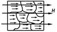 Электроны в ферромагнетиках, двигаясь по орбитам вокруг ядра атома, образуют элементарные токи, которые создают отдельные самопроизвольно намагниченные области (домены), имеющие разные направления микроскопических внутренних магнитных полей (рис. 2.6, а). Если ферромагнетик поместить во внешнее магнитное поле, то все домены разворачиваются вдоль внешнего поля, то есть ферромагнетик намагничивается (рис. 2.6, б).