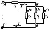 Параллельное соединение сопротивлений - это соединение, при котором один зажим каждого сопротивления присоединен к одной точке электрической цепи, а другой зажим каждого сопротивления присоединен к другой точке цепи (рис. 3.4).