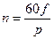 Частота вращения магнитного поля статора (n) определяется по формуле: