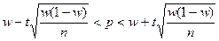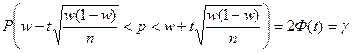 В этом случае для оценки генеральной доли Р нормально распределенного количественного признака по выборочной доле w будет использоваться формула: