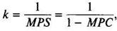 где: k – мультипликатор автономных расходов; MPS – предельная склонность к сбережению; MPC – предельная склонность к потреблению.