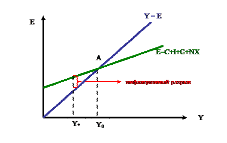 Инфляционный разрыв – величина, на которую должен сократиться совокупный спрос (совокупные доходы), чтобы снизить равновесный ВНП до неинфляционного уровня полной занятости.