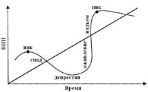 Фазы цикла(рис.15).Первая важнейшая фаза экономического цикла – кризис (рецессия, сжатие, спад). Его характерные черты: