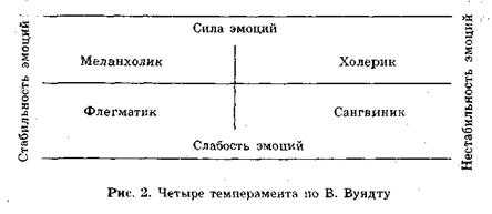 А.В.Вундт считал, что каждый из четырех темпераментов может быть описан по двум основаниям – силе эмоциональных реакций и уровню их стабильности, подводя основы под возможность количественного, естественнонаучного изучения темперамента.