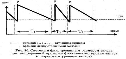 В момент достижения запасом порогового значения заказывается партия постоянного объема (рис. 90).