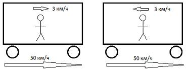 Для того, чтоб было более понятно, как работает закон сложения скоростей, рассмотрим такой пример. Вагон движется со скоростью 50 км\ч (это будет
