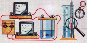 Закон Джоуля Ленца — Количество теплоты, выделяемое в единицу времени в рассматриваемом участке цепи, пропорционально произведению квадрата силы тока на этом участке и сопротивлению участка