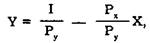 Кривые безразличия позволяют выявить потребительские предпочтения. Однако при этом не учитываются два важных обстоятельства: цены товаров и доход потребителей. Кривые безразличия лишь показывают возможность замены одного блага другим. Однако они не определяют, какой именно набор товаров потребитель считает для себя наиболее выгодным. Эту информацию дает нам бюджетное ограничение (линия цен, прямая расходов — budget constraint). Оно показывает, какие потребительские наборы можно приобрести за данную сумму денег. Если I — доход потребителя, Рх — цена блага X, Р — цена блага Y, а X и Y составляют соответственно купленные количества благ, то уравнение бюджетного ограничения можно записать следующим образом: