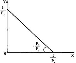 где -Рх/Ру — угловой коэффициент прямой расходов, который измеряет наклон этой прямой к оси абсцисс.