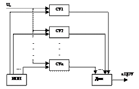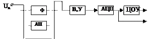 ПНЧ преобразует входное напряжение в частоту, пропорциональную входному напряжению. Эта частота через временной селектор (ВС) поступает на счетчик (Сч). ВС пропускают данную частоту на счетчик в течении образцового интервала времени, который задается генератором образцового интервала времени (ГОИВ). Число импульсов, пришедших на счетчик, пропорционально частоте, то есть напряжению. Погрешность этих АЦП определяется погрешностью преобразования напряжения в частоту.