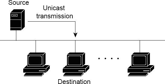 Unicast трафик направляется из одного источника к одному IP-адресу назначения. Этот адрес принадлежит в сети только одному единственному компьютеру или абонентскому STB как показано на рисунке ниже.