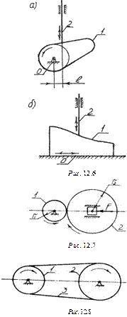 К кулачковым механизмам относятся механизмы, в состав которых входит кулачок, а кулачком называется звено, имеющее элемент высшей пары, выполненный в виде поверхности переменной кривизны. Кулачковые механизмы (рис.12.6) предназначены для преобразования вращательного или возвратно-поступательного движения входного эвена, которым, как правило, является кулачок 1, в возвратно-поступательное или возвратно-вращательное движение выходного звена-толкателя 2.