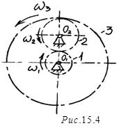 На рис. 15.4 показано последовательное соединение, состоящее из трех колес: 1, "паразитное" 2 и выходное 3 с внутренним зацеплением. Передаточное отношение