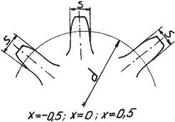 В зависимости от коэффициентов смещения зацепляющихся колес различают следующие типы передач: 1)передача без смещения (X1 = X2 = 0); 2)равносмещенная передача (X1 = -X2 ≠ 0, Х∑ = X1 + X2 =0); 3) положительная передача (X∑ > 0); 4) отрицательная передача (X∑ < 0). В передачах без смещения и равносмещенных[1]