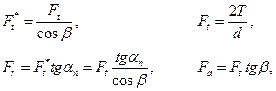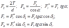 Силу F nраскладывают на окружную Ft и радиальную Fr составляющие: