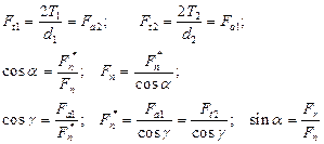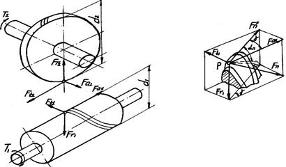 Рис. 22.3. Усилия в червячной передаче