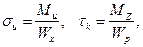 – соответственно наибольшее напряжение в расчетном сечении вала от изгиба моментом Muи кручения моментом Mk.