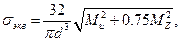 Так как валы работают в основном в условиях изгиба и кручения, а напряжения от осевых сил малы, то эквивалентное напряжение в точке наружного волокна по энергетической теории прочности определяют по формуле