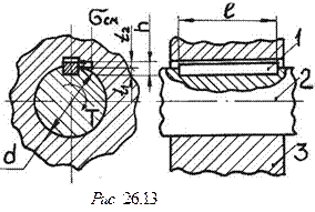 На практике сечение шпонки подбирают по ГОСТ 23360-78 в зависимости от диаметра вала, а длину l, шпонки назначают на 5-10 мм меньше длины ступицы. Затем по формуле (26.9) оценивают прочность соединения на смятие или вычисляют предельный момент, соответствующий напряжению