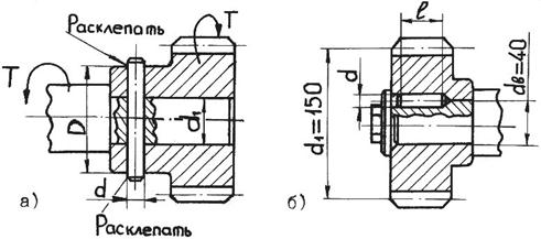 (б) штифтами: d – диаметр штифта; d1 – диаметр вала.