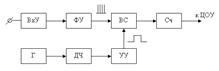 Источник напряжения измеряемой частоты через электромагнитное поле связывается с резонансным частотомером. Резонансный частотомер представляет собой высококачественный измерительный контур с точно градуированным механизмом настройки. При измерении частоты контур настраивается на резонанс по максимальному отклонению указателя индикатора (И). Отсчет значения частоты производится по шкале механизма настройки. В качестве индикатора резонанса используются полупроводниковый детектор или магнитоэлектрический микроамперметр.