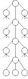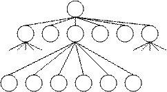 Анализ структур показывает, что выход из строя любого компонента на любом уровне (кроме нулевого) выводит из строя: на рисунке 3.2, а – '/3 системы; на рис. 3.2, б – '/6 системы. Вывод: во второй структуре в 2 раза быстрее обнаруживается отказ (меньше уровней иерархии для поиска), система несет в два раза меньшие убытки от отказа какого-либо компонента. Значит, вторая структура системы по сравнению с первой более эффективна. Однако число компонентов, подчиненных верхнему уровню управления, в зависимости от сложности решаемых задач должно находиться в пределах от 6 до 10. Превышение этого показателя снижает управляемость системы.