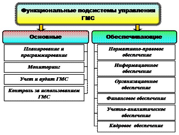 Система УГМС по функциональному признаку включает два вида: основные и обеспечивающи е функциональные подсистемы системы управления (рисунок 3.7).