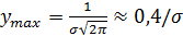 Кривая нормального распределения симметрична. Ордината вершины кривой у max будет при x = a; она определяется из выражения