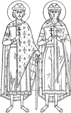 1. Назовите имена святых, изображенных на рисунке, и укажите время их жизни.