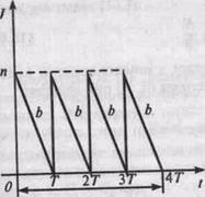 Пополнение заказа происходит партиями одинакового объема, т.е. функция а(t ) не является непрерывной: a(t) = 0 при всех t, кроме моментов поставки продукта, когда a(t)= n, где п - объем партии. Так как интенсивность расхода равна b, то вся партия будет использована за время