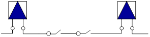 Реже применяется двухстороннее или параллельное питание (рисунок 4.17), при котором оба пункта питания все время подсоединены к линии, благодаря чему при выходе из строя одного из пунктов или обрыва линии питание автоблокировки не прекращается. Пункты питания при такой схеме должны быть сфазированы. Это можно сделать, если они относятся к одной энергосистеме и если параметры повышающих трансформаторов одинаковы и одинаковы схемы соединения обмоток. Протяженность плеч питания не должна превышать 60-65 км при смещенной системе питания и 40-45 км при питании переменным током (U =6-10 кв).