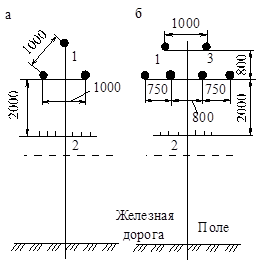 Наибольшее распространение имеют ВЛ автоблокировки, представляющие собой трехфазную высоковольтную цепь с изолированной нейтралью частотой 50 Гц и напряжением 10 кв или 6 кв, ниже которой расположены - сигнальные провода (рисунок 4.19 (а,б)).