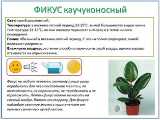Молодцы! А вот и паспорт для фикуса! Кто сможет рассказать что-нибудь интересное про фикус?