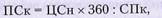 где ПСк — годовая норма процентной ставки за предоставляемый кредит; ЦСн — ценовая скидка, предоставляемая покупателю при осуществлении немедленного расчета за приобретенную продукцию, в %; СПк — срок предоставления кредита (кредитный период), в днях.