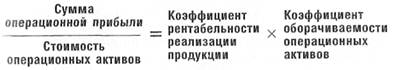 Из приведенной модели видно, что при неизменном объеме используемых операционных активов и коэффициенте рентабельности реализации продукции сумма операционной прибыли предприятия будет зависеть только от коэффициента оборачиваемости операционных активов.