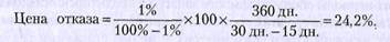 Вот пример из американской практики. Товар продается на условиях: скидка 1% при платеже в 15-дневный срок при максимальной длительности отсрочки 30 дней. Уровень банковского процента — 10%! годовых.
