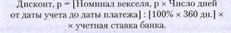 Величина дисконта прямо пропорциональна числу дней, остающихся от дня учета векселя до срока платежа по нему, номиналу векселя и размеру банковской учетной ставки: