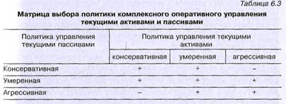 Сочетаемость различных типов политики управления текущими активами и текущими пассивами показана в табл. 6.3.
