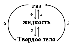 Важно знать и понимать, каким образом осуществляются переходы между агрегатными состояниями веществ. Схему таких переходов изобразим на рисунке 4.
