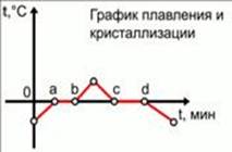 Полезно уметь графически изобразить процессы плавления и кристаллизации вещества на графике. По осям графика расположены: ось абсцисс – время, ось ординат – температура вещества. В качестве исследуемого вещества примем лед при отрицательной температуре, т. е. такой, который при получении тепла не начнет сразу плавиться, а будет нагревать до температуры плавления. Опишем участки на графике, которые представляют собой отдельные тепловые процессы: