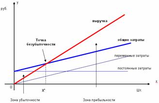 Минимальный объем производства может быть определен посредством методы безубыточности. Определение точки безубыточности базируется на взаимосвязи денежного выражения объема реализованной продукции (выручки), издержек (затрат) и чистого дохода (прибыли), а также на делении затрат на условно-переменные (затраты на сырье и материалы, комплектующие, полуфабрикаты, основную заработную плату
