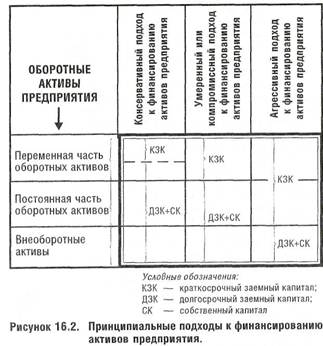 Существуют три принципиальных подхода к финансированию различных групп активов предприятия (рисунок 16.2.).